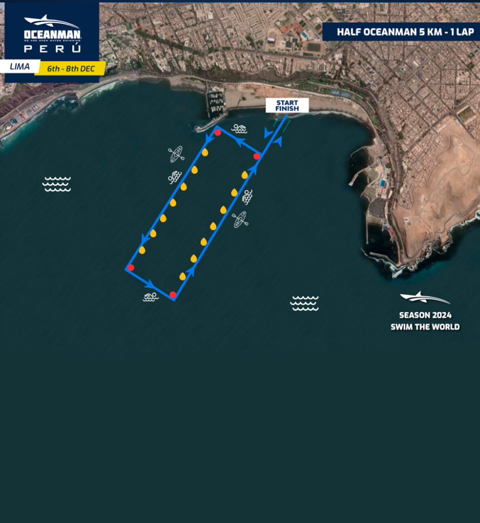 El Oceanman Perú es uno de los eventos más destacados del calendario de aguas abiertas en el país, y se celebra en la hermosa Playa Agua Dulce, en Lima. Con distancias adaptadas a todos los niveles de habilidad, esta competencia reúne a nadadores de diferentes edades y capacidades en un desafío único en el océano. Las distancias varían desde los 500 metros de la modalidad OceanKids, pensada para los más jóvenes, hasta los 10 km de la exigente categoría Oceanman. Además, la modalidad OceanTeams permite a los participantes formar equipos para nadar relevos, con 3 segmentos de 500 metros cada uno. Para aquellos que buscan una prueba más desafiante, el Half Oceanman de 5 km y el Oceanfins, una modalidad exclusiva para nadadores con aletas, son opciones ideales. Sin importar la categoría, el Oceanman Perú promete ser una experiencia llena de adrenalina, esfuerzo y camaradería.